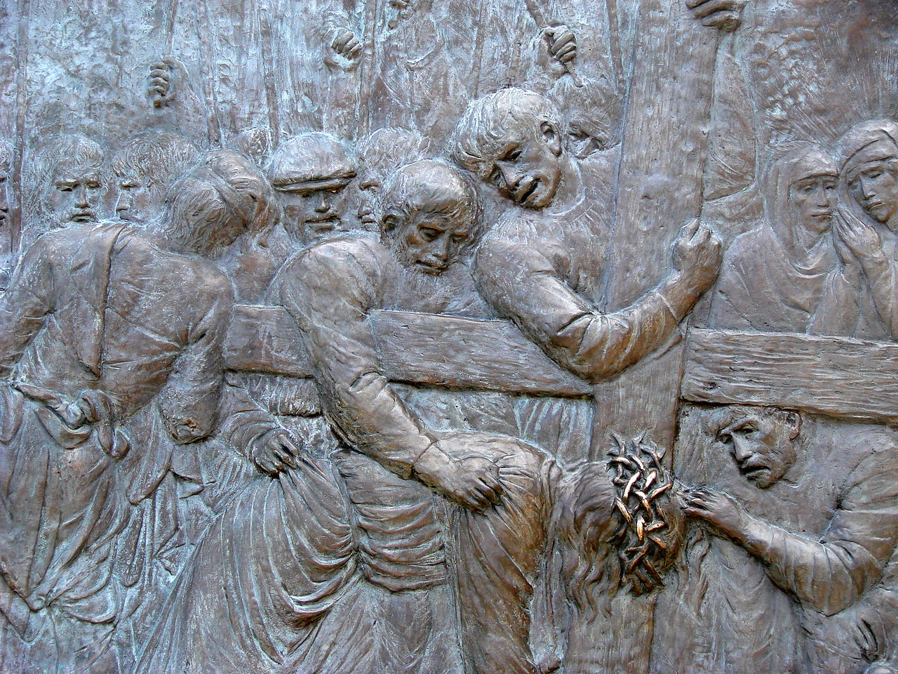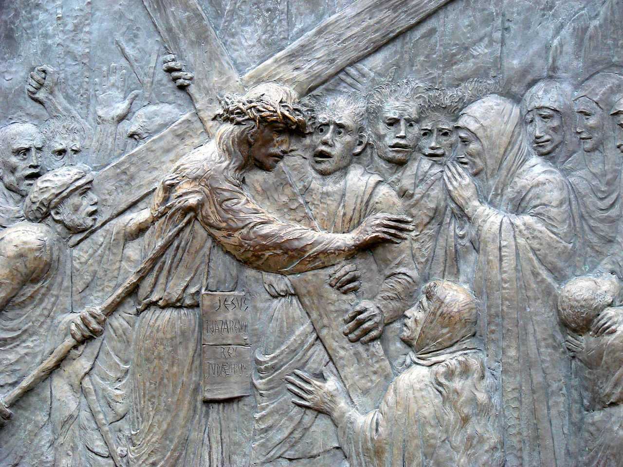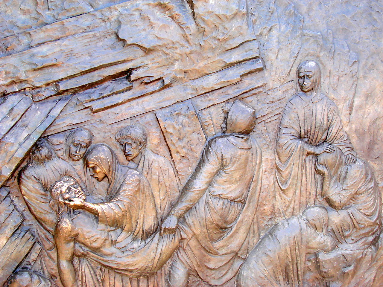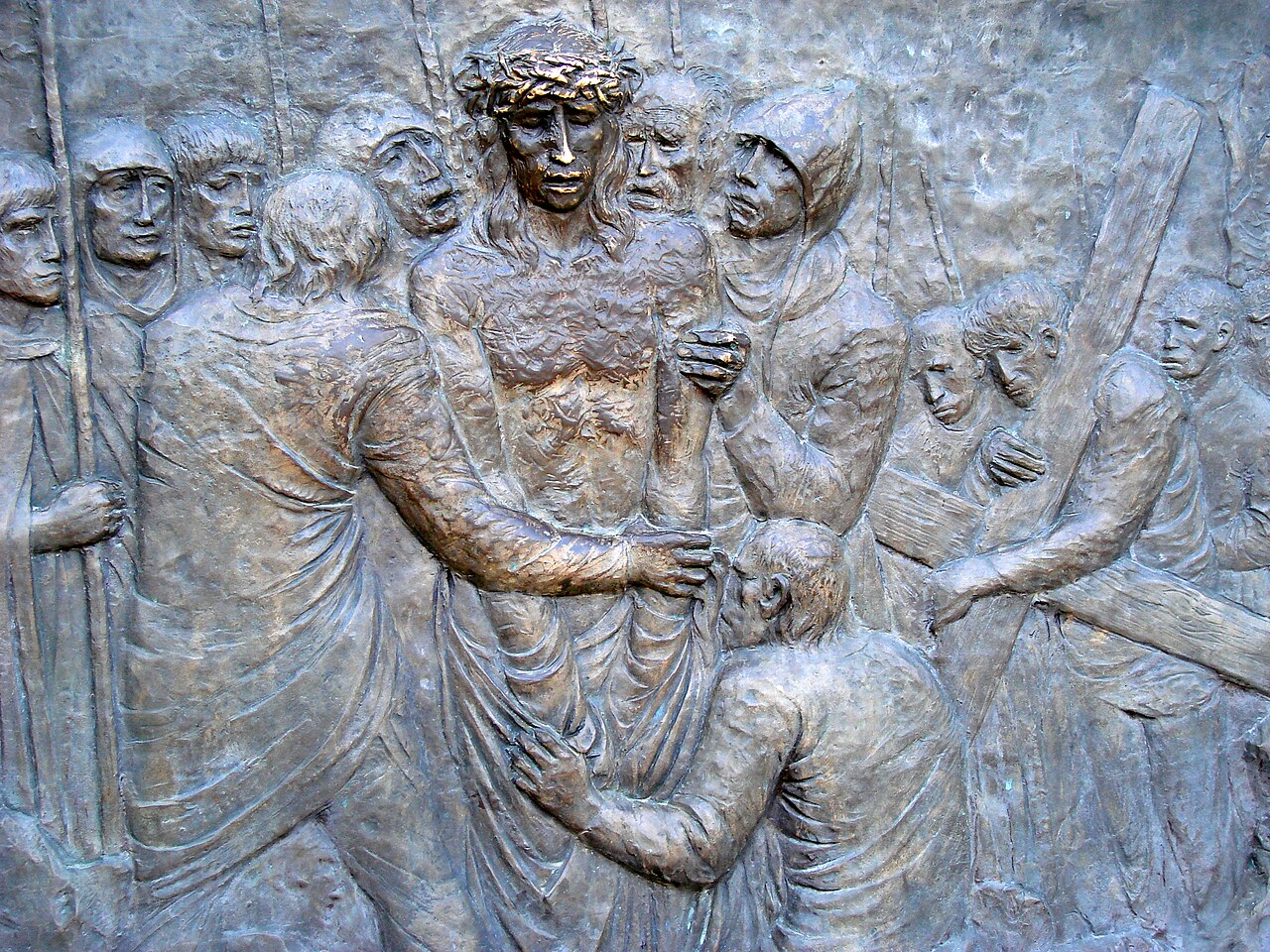 Italian artist Federico Severino (b. 1953) was commissioned in 2009 to create a series of 14 bronze bas-reliefs depicting the Stations of the Cross to commemorate the 1,400th anniversary of the Pantheon’s dedication as a Christian church. One set of these sculptures was installed in the Rotunda of the Pantheon in Rome in 2010. The second set was acquired by Saint Michael and All Angels Episcopal Church in Dallas, Texas, where it was installed in 2018. Severino’s work is noted for its expressive and emotive style, capturing the profound moments of Christ’s Passion.