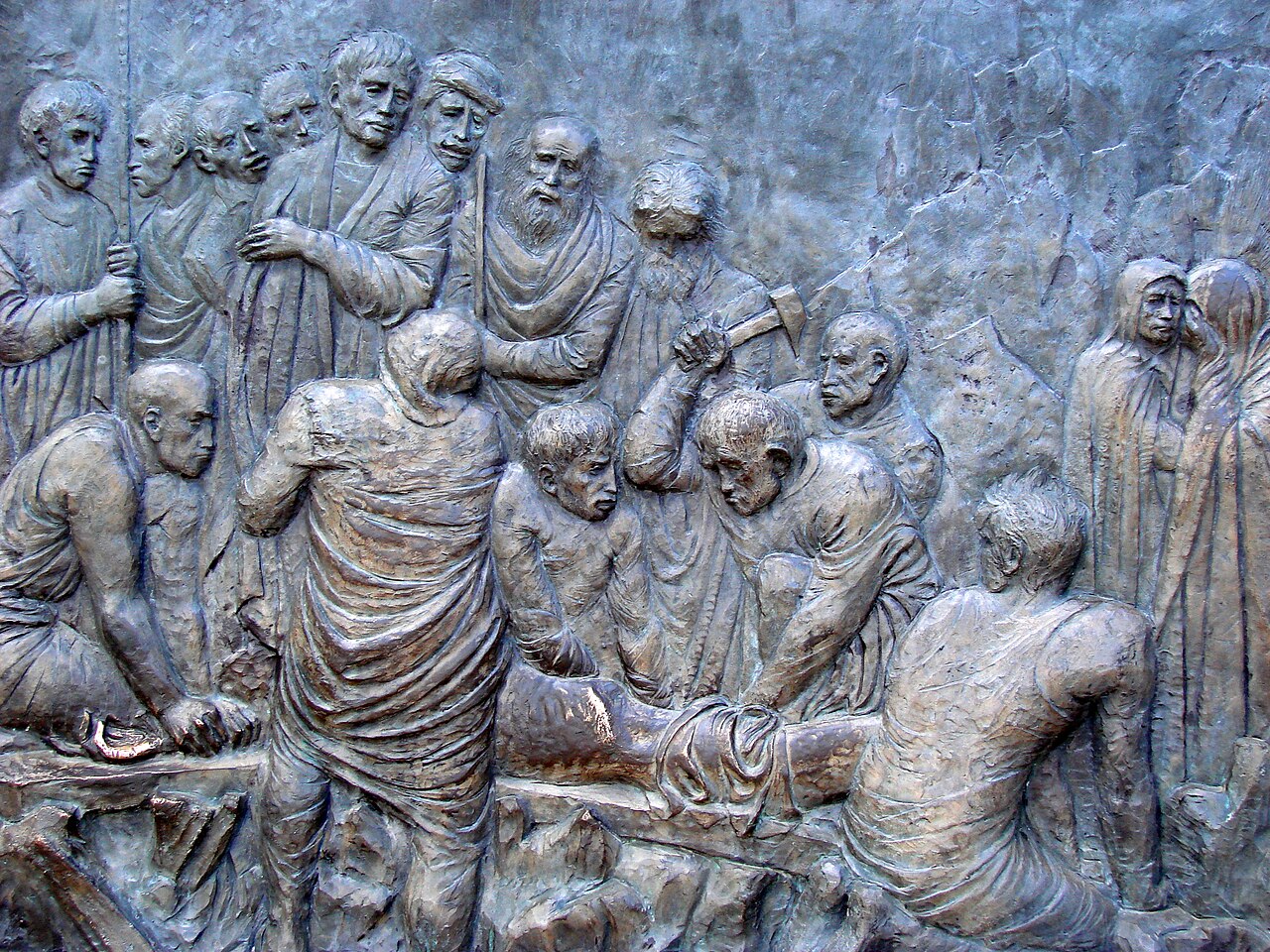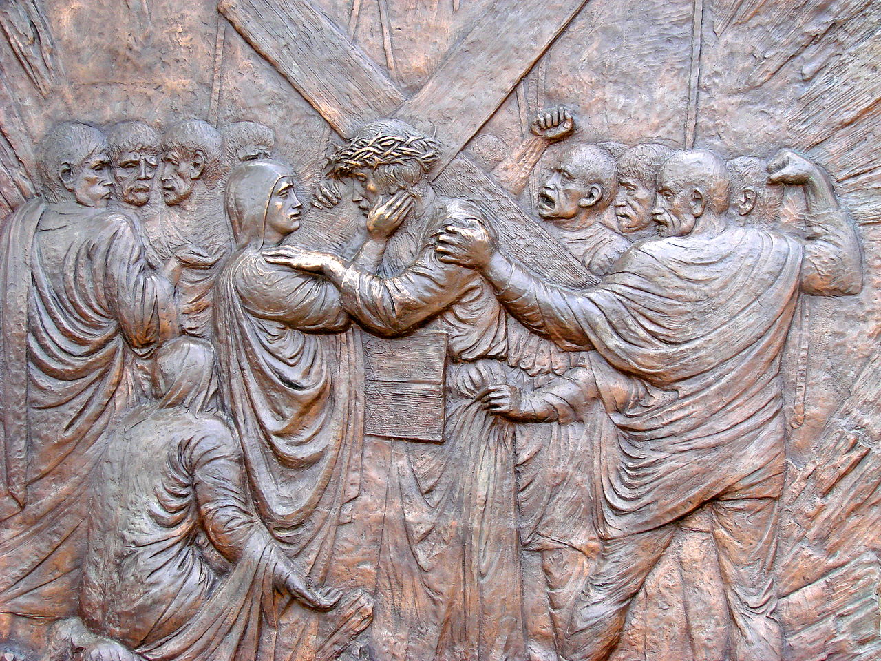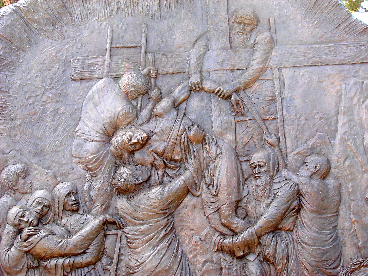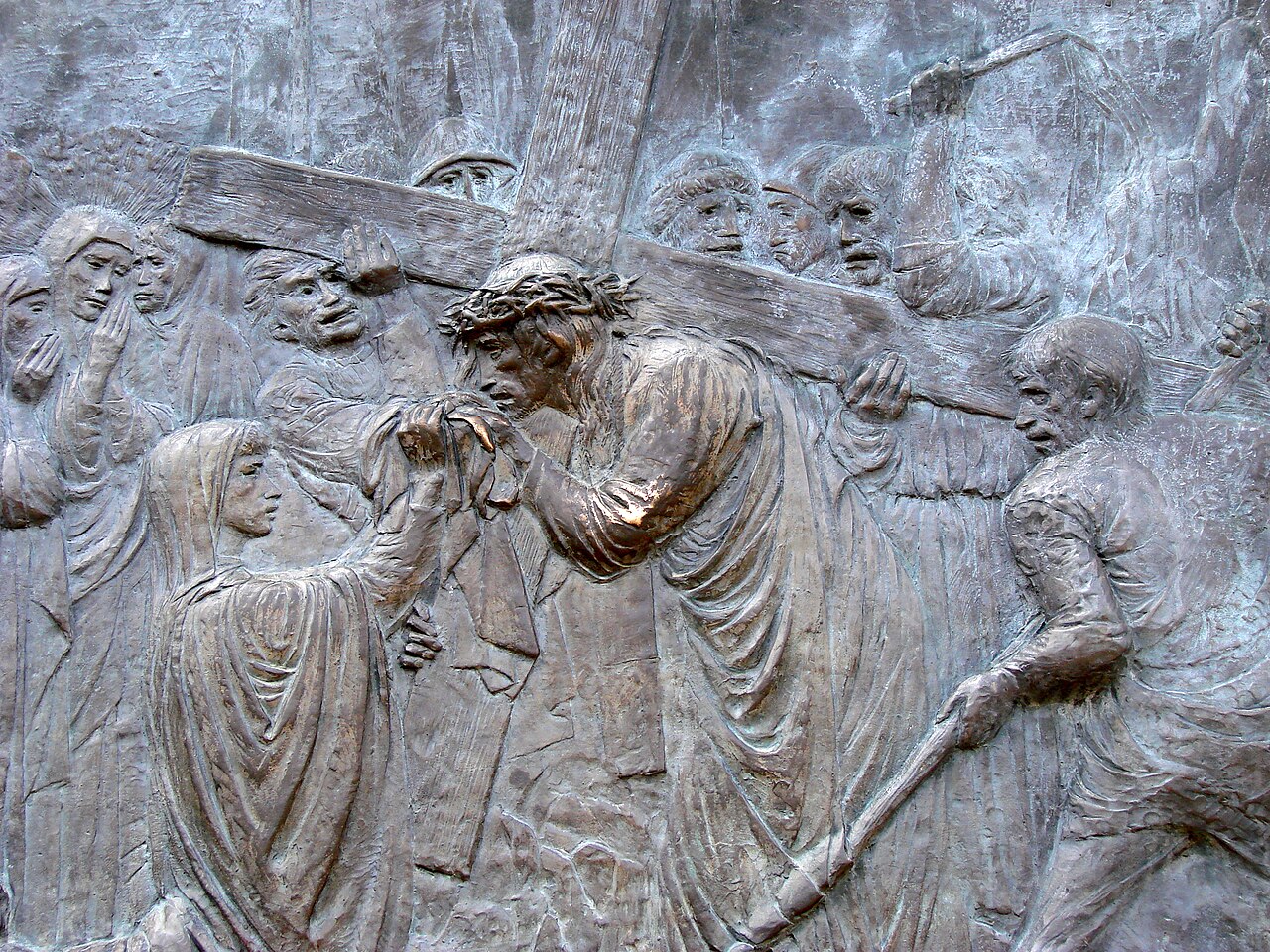 Italian artist Federico Severino (b. 1953) was commissioned in 2009 to create a series of 14 bronze bas-reliefs depicting the Stations of the Cross to commemorate the 1,400th anniversary of the Pantheon’s dedication as a Christian church. One set of these sculptures was installed in the Rotunda of the Pantheon in Rome in 2010. The second set was acquired by Saint Michael and All Angels Episcopal Church in Dallas, Texas, where it was installed in 2018. Severino’s work is noted for its expressive and emotive style, capturing the profound moments of Christ’s Passion.